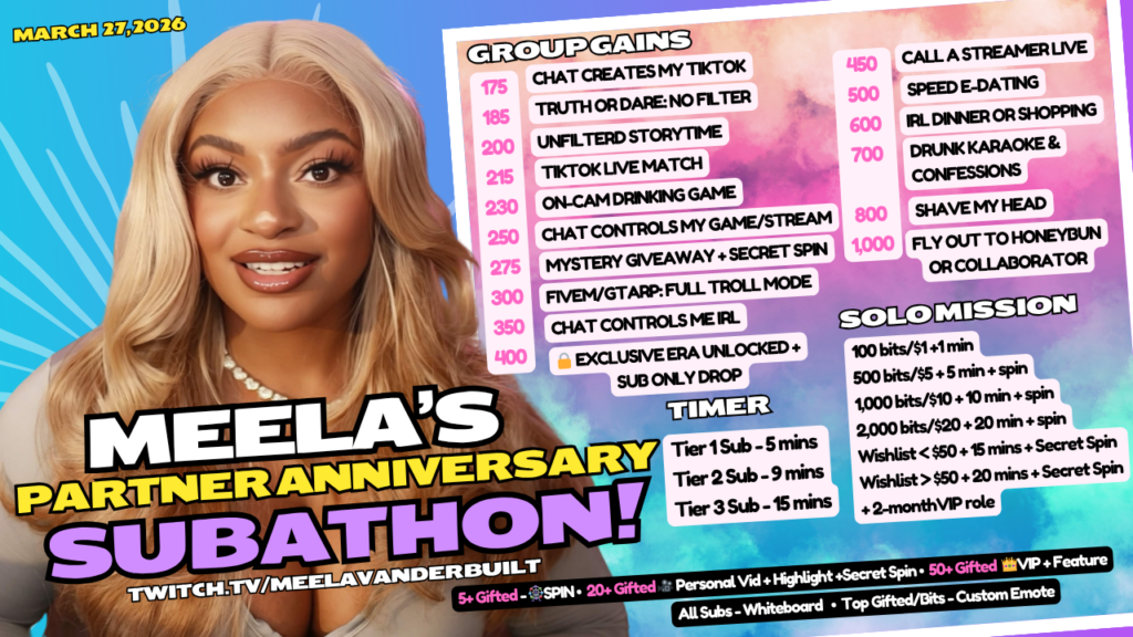 Meelathon March 27 12pm pst